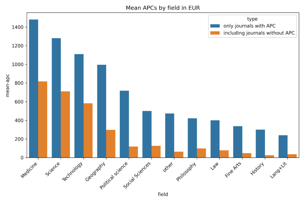 Finally, we do have some suggestions for improvement of the dataset, based on this experience. One thing that would make using the dataset easier is the use of standard identifiers for certain things, such as countries and languages. If reliable ISO codes or Wikidata QIDs were already present, mapping to Wikidata in order to pull in additional information would be much easier. Adding a continent or ‘world region’ column would in any case be highly useful. Similarly, providing all APC values also in a mapping to one particular currency, whether that’s EUR, USD or RMB, would also make using the dataset much easier.